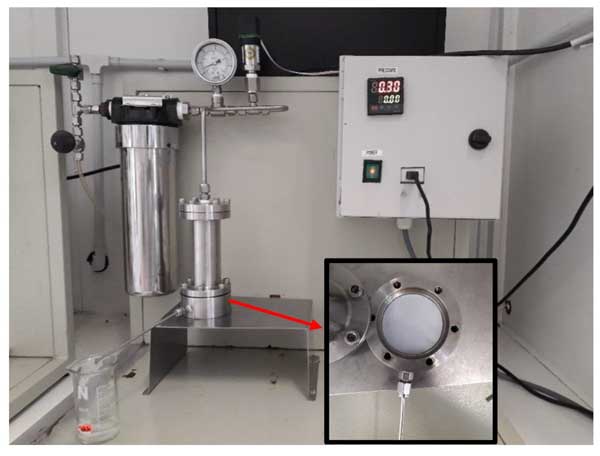 為了生產(chǎn)聚合物膜,聚偏二氟乙烯和1-甲基-2-吡咯烷酮分別用作聚合物和溶劑。圖1展示了用于制備涂料的過程。最初,聚合物PVDF使用加熱套在60至70℃的溫度范圍內(nèi)完全溶解在1-甲基-2-吡咯烷酮溶劑中(圖1a)。為了獲得更好的合成膜滲透通量,加熱套溫度應(yīng)始終保持在上述范圍內(nèi)。然后將涂料溶液注入干凈的瓶中,再將所需量的粉末活性炭添加到原液中以生成用于混合膜的原液。最后,將裝有涂料溶液的玻璃瓶放入超聲波儀中8小時(shí),以確認(rèn)添加劑的均勻混合,在制備的涂料中沒有產(chǎn)生任何氣泡。制膜過程使用甲半自動(dòng)膜澆鑄機(jī)施加到合成使用干-濕相處理的平片膜。