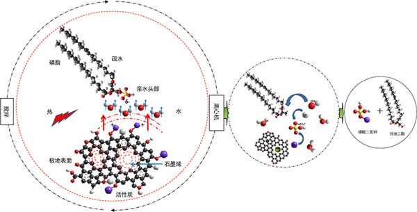 圖3:磷脂、水和活性炭之間的相互作用機制。