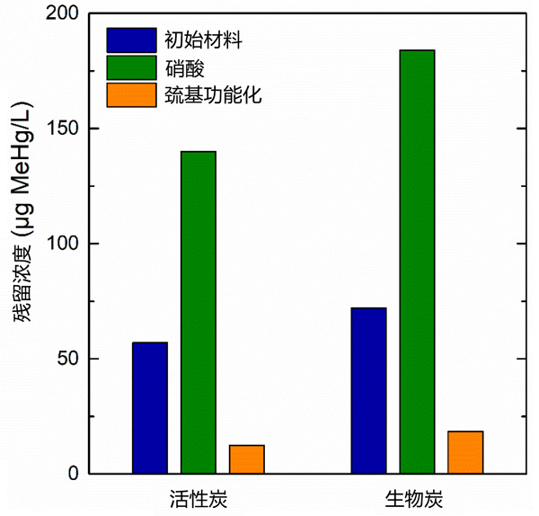 汞被對(duì)生物體具有高毒性,用于處理汞或甲基汞污染的水的方法不多,比如有吸附、混凝、過濾和生物過程。然而,到目前為止,只有吸附法在處理用于飲用的水時(shí)是比較可靠的。在接觸中與水相有關(guān)的主要形式是甲基汞,本次我們使用兩種碳基吸附材料,即活性炭和用來對(duì)照的生物炭,通過在其表面引入硫醇活性基團(tuán)進(jìn)行改性,以ppb濃度水平從類天然水中去除甲基汞。