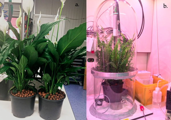 為測試選擇了三種不同的介質(zhì):活性炭和膨脹粘土、土壤。選定的植物盆栽土壤由泥炭、綠色堆肥、石灰和肥料組成;牡倪x擇基于之前的研究,因為它們是市場上常見的基材。對于每種類型的基材,進(jìn)行了六項測試:三項使用干基材,三項使用濕基材。將基板分別放入塑料容器中,即基板的暴露區(qū)域。測試了兩種不同的植物(圖1)。每種植物選擇3株進(jìn)行試驗,并選擇具有相似年齡和大小特征的植物。