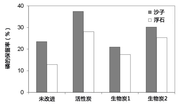 圖4:過濾柱實驗中的磷(正磷酸鹽)保留率。