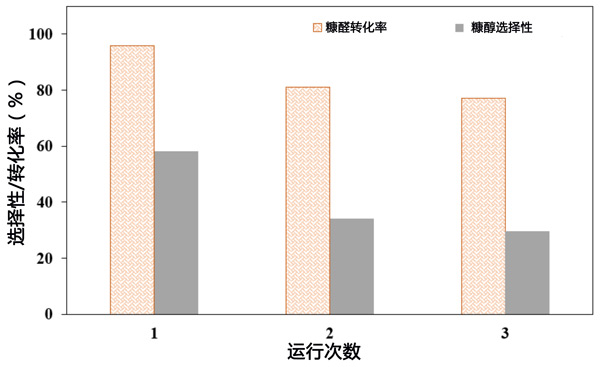圖3:使用載鐵鉑活性炭催化劑將糠醛轉化為糠醇的催化劑可回收性。