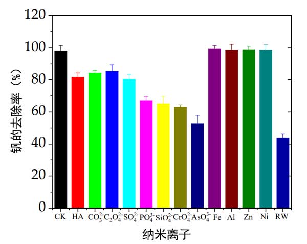 圖2:共存離子對活性炭載納米零價(jià)鐵去除釩的影響。