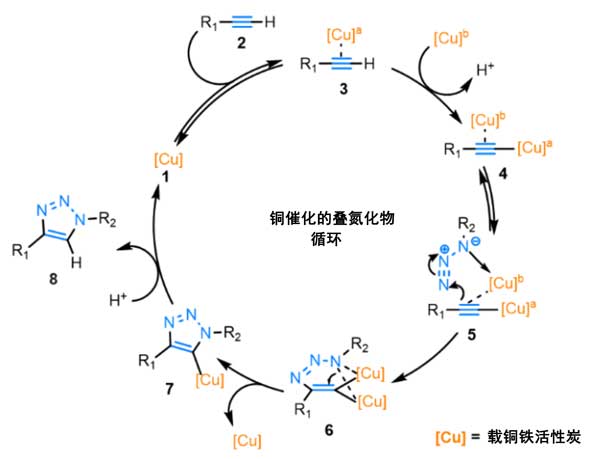 圖4:活性炭催化的疊氮化物-炔烴環(huán)加成反應(yīng)機(jī)理。
