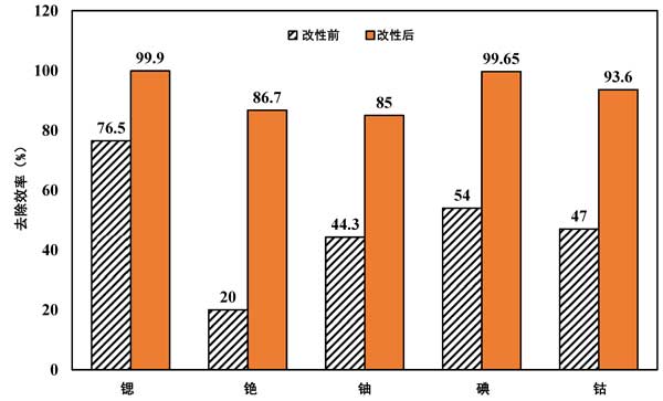 圖3:活性炭改性前后放射性核素去除效率的比較。