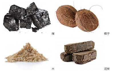 最常用的原料是煤(無煙煤,煙煤,亞煙煤和褐煤),椰殼,木材(軟和硬)和泥炭。許多其他原材料已被評估,如堅果殼,橄欖石和棕櫚仁,但它們的商業(yè)限制總是在于原料供應。
