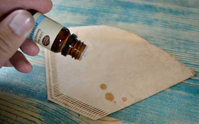 這一步是可選的,但如果你想要的話,你可以添加幾滴精油到過(guò)濾器的外部,讓你的鞋子附魔上你喜歡的氣味。并且你會(huì)發(fā)現(xiàn)活性炭會(huì)吸收一些精油氣味,但不是全部?Х冗^(guò)濾紙傾向于從制作的咖啡渣中吸收油,同時(shí)讓水通過(guò),這對(duì)我們來(lái)說(shuō)是比較適合的。讓精油放在過(guò)濾器的外部,而臭味和鞋子的水分通過(guò)過(guò)濾器吸收到活性炭粉中。
