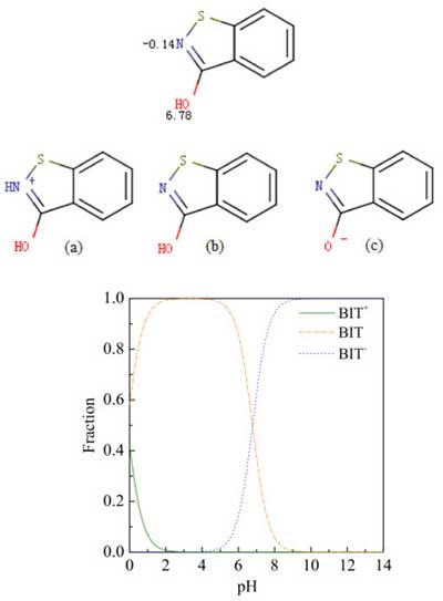 圖2顯示了根據(jù)它的pKa在不同pH條件下BIT的狀態(tài)。BIT的狀態(tài)是(b)在pH2-6,這是非離子和疏水的,導(dǎo)致高吸附。當(dāng)pH為7-12時,BIT保持負電荷,這意味著它與水具有緊密的親和性并且被活性炭吸附不良。當(dāng)pH<4時,OIT已經(jīng)收取官能團,這影響了吸附。在pH>pH pzc時,帶負電的氧官能團也阻礙OIT在活性炭上的吸附。官能團也影響活性炭的吸附。