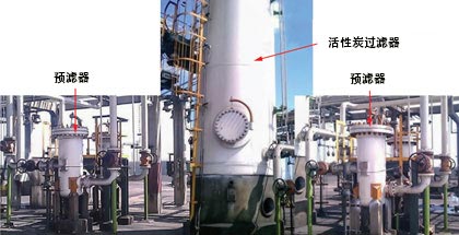 圖2.具有預(yù)過(guò)濾和后過(guò)濾系統(tǒng)的典型貧胺活性炭吸附系統(tǒng)。