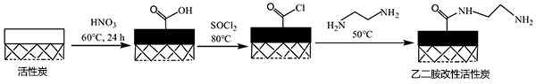 圖1.乙二胺制備改性活性炭的示意圖。