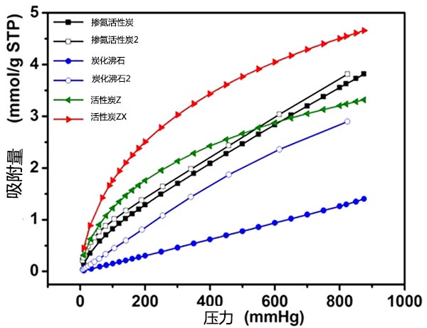 圖3顯示炭化沸石對CO 2和N 2的吸附比較低。值得注意的是, 與其他相比,摻氮活性炭在 p > 0.5 bar時顯示出較高的CO 2吸附,這主要歸因于四極CO 2分子與不飽和金屬位點中的正電荷之間的相互作用。此外,除摻氮活性炭外,還包括CO2和N 2吸附容量遵循活性炭Z>活性炭ZX>炭化沸石的順序,這意味著這些前體生產(chǎn)的氮摻雜活性炭具有顯著的氣體吸附性能。