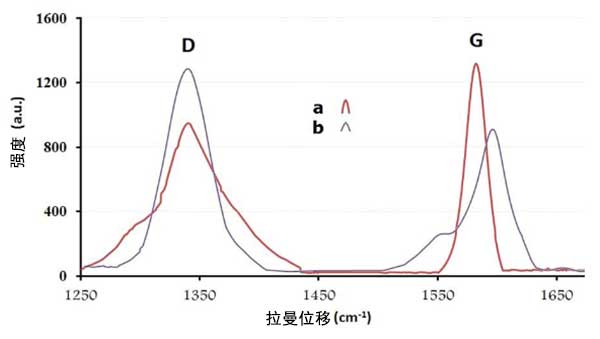 圖2:拉曼光譜:(a)石墨烯(b)活性炭復合物。