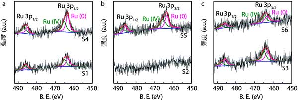 圖3:活性炭催化劑的高分辨率XPS光譜,分析氧化態(tài)和釕的原子比。