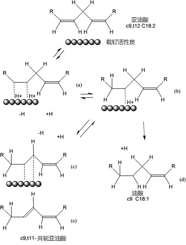 圖4:亞油酸異構化和氫化的機理。