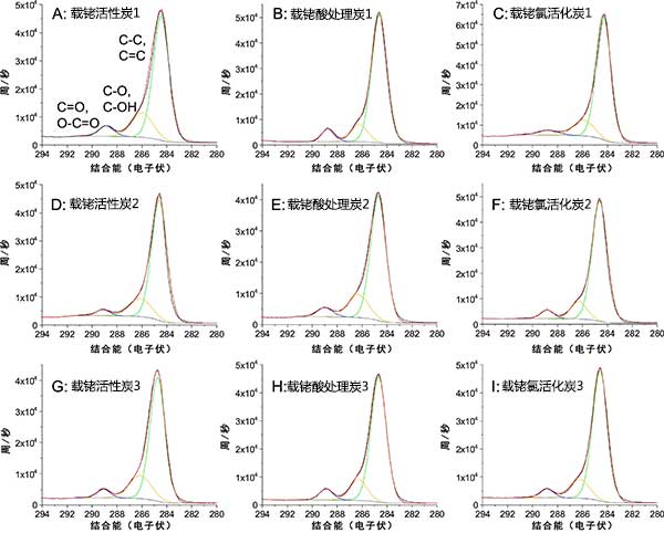 在我們的案例中,我們對所有9種活性炭催化劑進行了詳細的X射線光電子能譜分析。但是,我們應該注意到,就表面原子組成而言,沒有檢測到信號。我們將此結(jié)果歸因于銠的固有低信號,并且我們的銠中心極其分散在我們的碳基質(zhì)中,反過來非常低的暴露金屬部分用于有意義的檢測,X射線粉末衍射儀分析也證實了這一點。