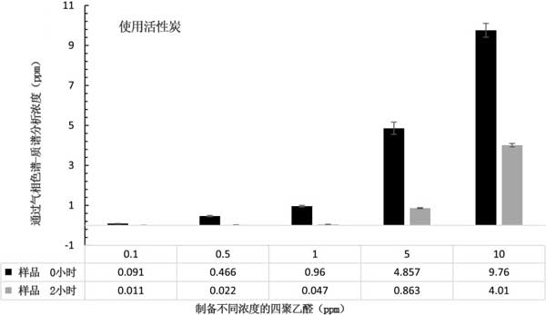 在活性炭,碳摻雜的幾種二氧化鈦納米催化劑的研究中,活性炭是最有效的降解四聚乙醛的材料。在0.1、0.5、1、5和10ppm的研究濃度范圍內(nèi),以及2小時(shí)的反應(yīng)時(shí)間內(nèi),負(fù)載濃度為0.2g L-1的活性炭在低濃度下顯示出比高濃度更顯著的乙醛去除。增加初始的聚乙醛溶液濃度不會導(dǎo)致更有效的去除乙醛。隨著制備的聚乙醛溶液初始濃度的增加,活性炭對叔醛的去除率降低。使用活性炭通過吸附有利于除去聚乙醛,也可以在短時(shí)間去除甲醛。與活性炭相比,碳摻雜的二氧化鈦納米催化劑在研究的濃度范圍,催化劑負(fù)載濃度,光強(qiáng)度和反應(yīng)時(shí)間內(nèi)通過光催化去除溶液中的聚乙醛無效。