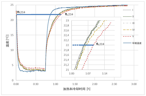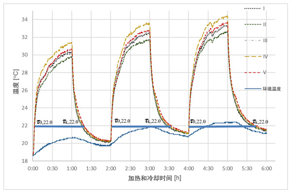 在分析曲線如圖2,圖3和圖4中,并收集結(jié)果,在一個(gè)溫度(22℃)中選擇,清楚地表明不同相變材料的影響活性炭中的量上的周期時(shí)間長(zhǎng)度與發(fā)生個(gè)體樣品中的熱交換過(guò)程。相對(duì)于溫度傳感器的更高的質(zhì)量和熱容量,即使吸附的相變材料的量很小,也可以看到處理時(shí)間的差異。當(dāng)與參比樣品(I),沒(méi)有相變材料,總的冷卻和加熱時(shí)間的所有樣品與相變材料的不同水平長(zhǎng)。對(duì)于樣品V,此時(shí)間延長(zhǎng)了7.5%,對(duì)于樣品IV,延長(zhǎng)了5.2%,對(duì)于III,延長(zhǎng)了2.4%,對(duì)于樣品II(未活化的活性炭),僅延長(zhǎng)了0.2%。