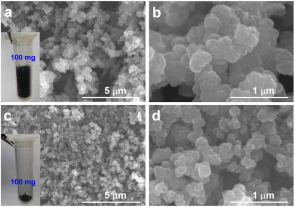 圖2中的插圖是兩種活性炭的數(shù)碼照片。當(dāng)將相同量的兩種活性炭(100 mg)放入相同體積的離心管(5 mL)中時(shí),活性炭-1粉末占據(jù)的體積更大,這表明他的密度較低。通過(guò)掃描電子顯微鏡研究了他們的形態(tài)。如圖2所示可以看出,與原始材料相比,兩種活性炭的外觀變化不大。但是,它們的粒徑不同。顯然,活性炭-1的顆粒大于活性炭-2的顆粒。這些顆粒聚集在一起并形成多孔形態(tài);钚蕴-1具有更大的孔徑,表明較疏松的多孔結(jié)構(gòu)。