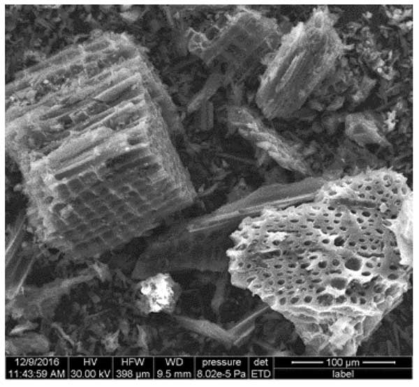 圖1:木質(zhì)粉末活性炭的SEM。