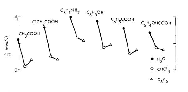 等溫線的比較表明,吸附通常以CICH,COOH>CHsCOOH>OHCH,COOH>NH,CHsCOOH的順序降低。圖1通過取代乙酸在碳原子上的吸附等溫線顯示了這一點(diǎn)。