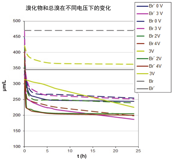 圖2:在沒有電壓的情況下溴化物和總溴濃度的變化。